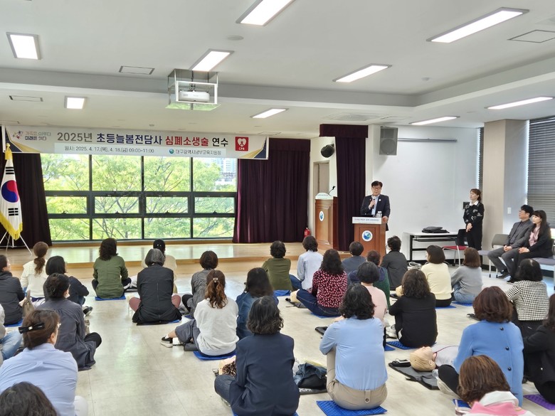 [대구 세계타임즈=한윤석 기자] 대구남부교육지원청(교육장 류호)은 지난 4월 17일(목)과 18일(금) 양일간 남부교육지원청 대회의실에서 관내 초등늘봄전담사 83명을 대상으로 심폐소생술 및 응급처치 연수를 실시했다.